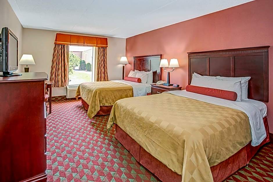 This accessible room offers a TV and seating area with table and two chairs. A microwave and refrigerator is included. In the bathroom you will find a roll-in shower.